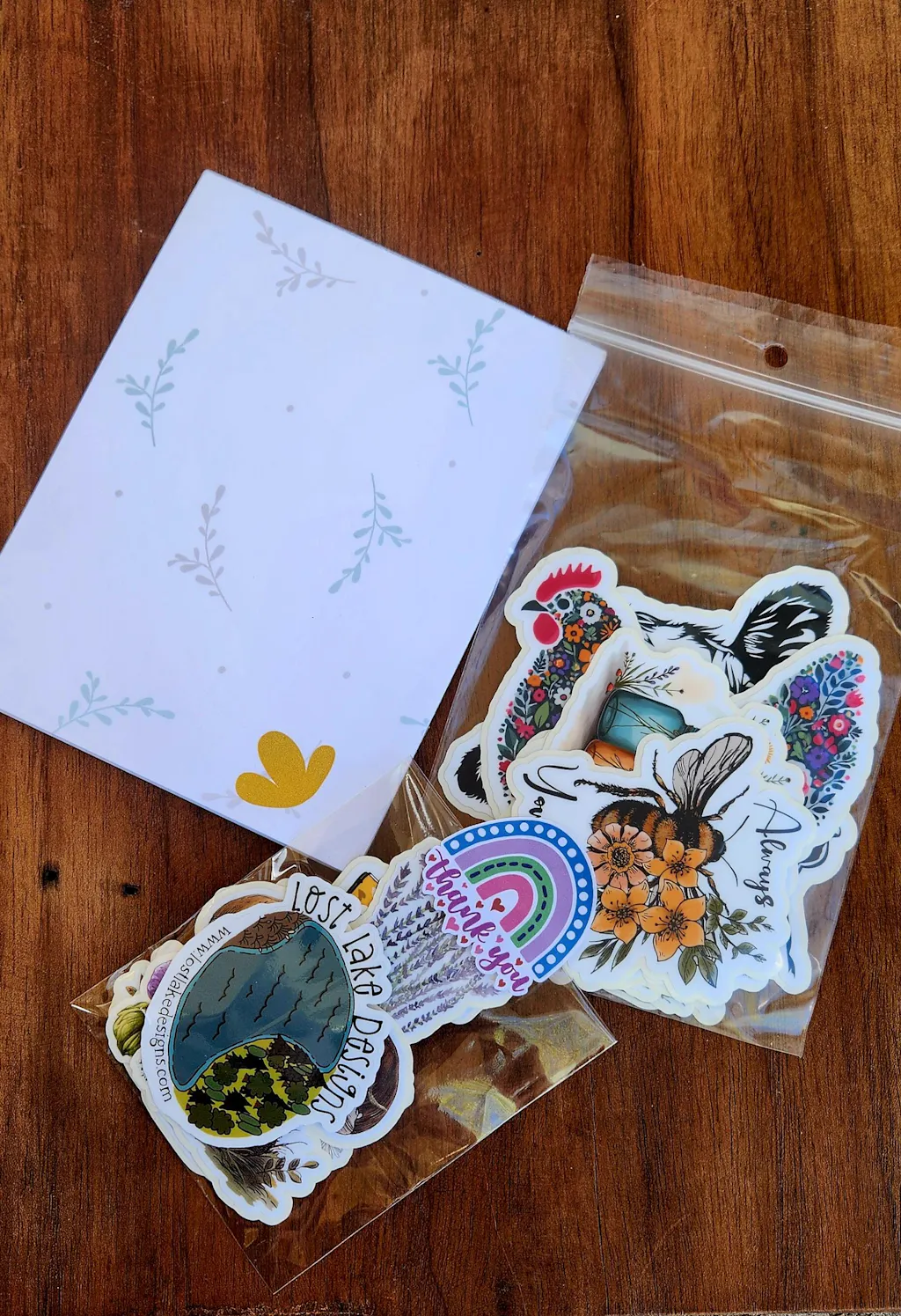 I received a bunch of stickers and a notepad! First the stickers are even more adorable in person, and it was tough to pick a favorite. The notepad is so pretty, I'm excited to use it for all the written things 😍