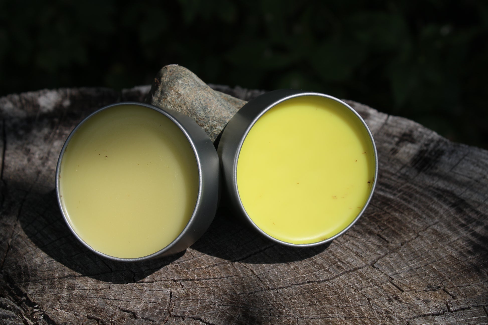 Ingredients: Herb-Infused Olive Oil (calendula, chamomile, plantain, yarrow, lavender), Beeswax, Vitamin E Oil, Essential Oil.